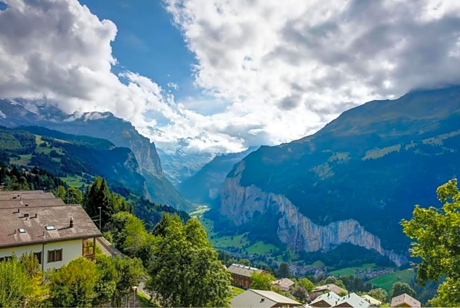 Our single rooms, offering 59 ft² of thoughtfully designed space, are the perfect retreat for solo travelers. Each room features a comfortable single bed (3 ft x 6.6 ft) and provides a breathtaking view of the mountains, as well as the beautiful Lauterbrunnen Valley, with your own balcony to take in the scenery. All rooms are equipped with a shower/WC, hairdryer, radio, flat-screen TV, telephone, and Wi-Fi